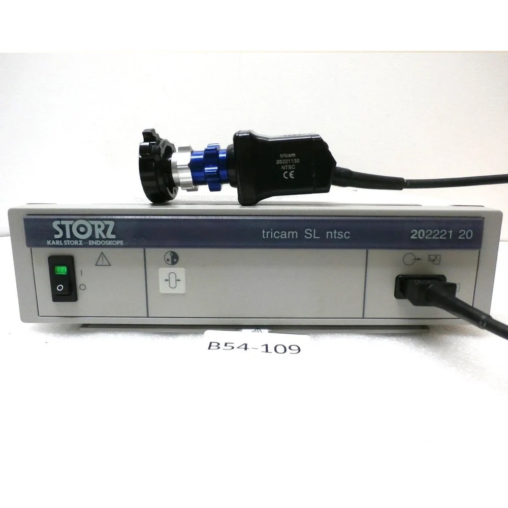 A Light Mode: Toggles between Light Source 1 and Light Source 2 for strobe scopy procedures, Insufflator: Allows control of Karl Storz electronic insufflators Image Capture: Allows still image and video capture to a connected USB storage device and/or USB printer Light Source: Allows selection of light source intensity of25%, 50%, 75%, 100%, or Standby (0%). ft Patient Information Patient Information Display: Turns patient information display Off or On. On enables the user to view, edit, and enter patient information using the options listed below, Patient Information Page Select: Selects page for display (1 -10). Clear Patient Information: Deletes text from all patient information pages, Edit Patient Information: Allows entering or editing of patient information, Program Head Buttons: Allows select features/options to be activated by the camera head buttons (A orY). (NOTE: Additional options for button programming are available under” Button Settings” feature ). SCB • (not available in H3-M HDMicroscopy Head) SCB Text(On/Off): Turns SCB text display On and Off with the exception of SCB Warning/Status messages. This command over rides SCB parameter display set in ‘Configure SCB Display’ below, fl Configure SCB Display: Displays up to eight SCB devices for on-screen monitoring (four on the top of the screen and four on the bottom). NOTE: “SCB Text On/(Off)” command overrides this function, ft SCB Warning/Status Display: Turns SCB “warning” and” status” text On or Off(“alarms” and “errors” cannot be turned off, as these involve personal safety of the patient or physician).ft NOTE: “SCB Text On/(Off)” command does not override this function. Shutter(exposure control): Selects the camera exposure control, including automatic and seventeen manual shutter speeds ranging from 1/60 -1/17,000 second, White Balance: Determines the camera system’s color controls to conform to the color temperature of the light source in use.